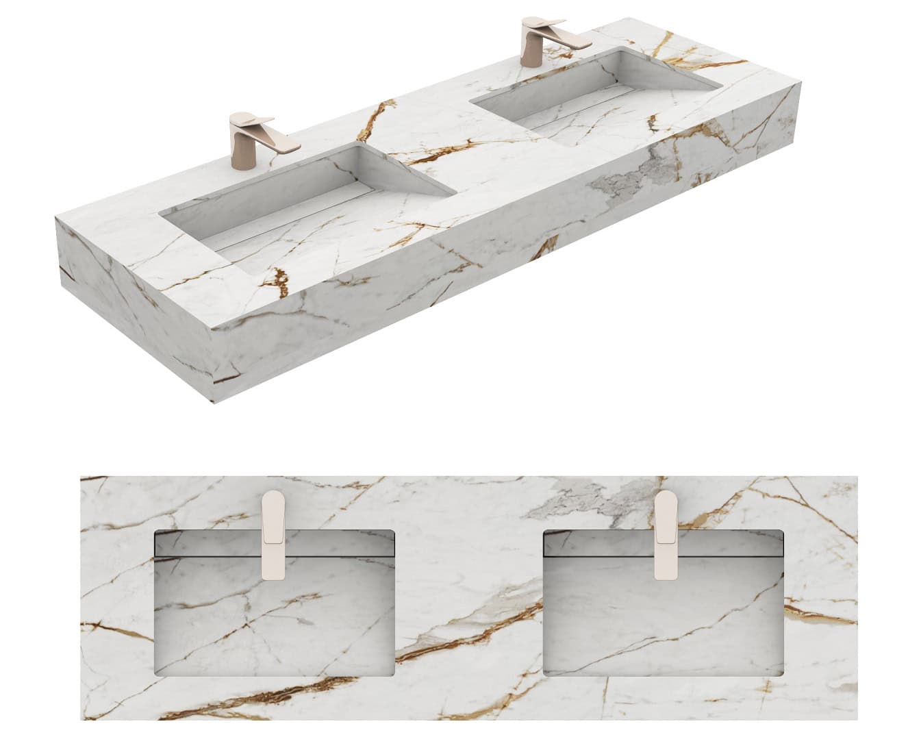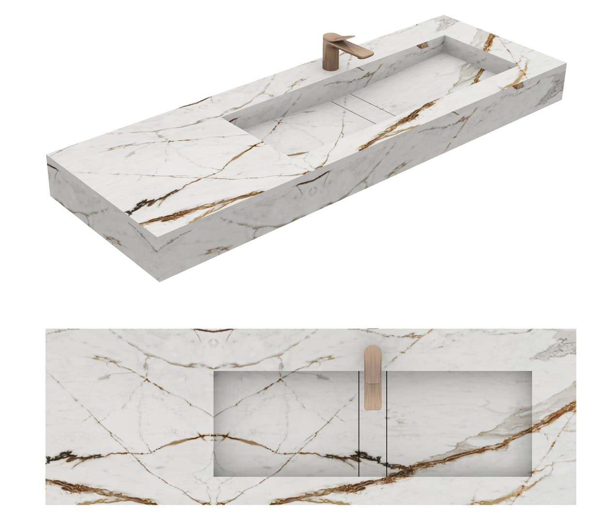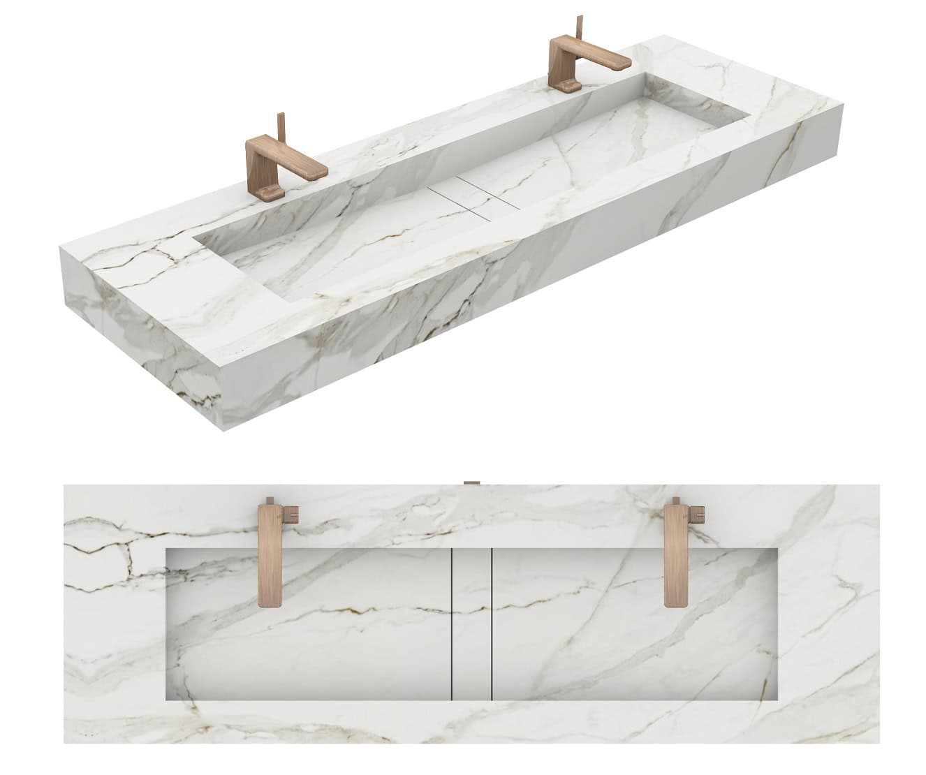 Je kiest het model van de waskom en de positie van één of meerdere waskommen. De dikte van het blad verschilt per model en staat duidelijk vermeld in de productspecificaties.