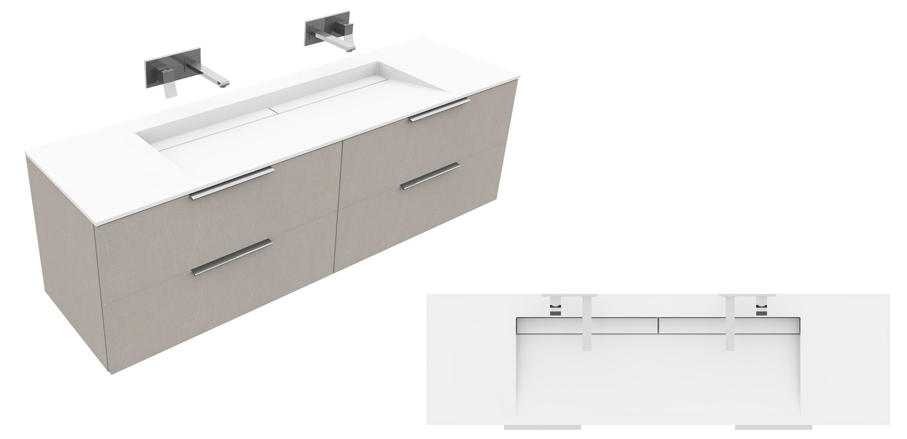 Een meubelset bestaat uit een wastafelblad incl. onderkast met laden of deuren.